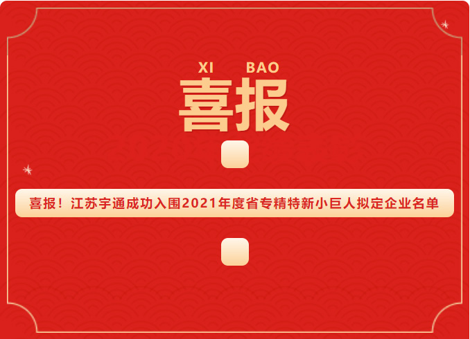 喜報!江蘇宇通成功入圍2021年度省專精... 2021-12-22